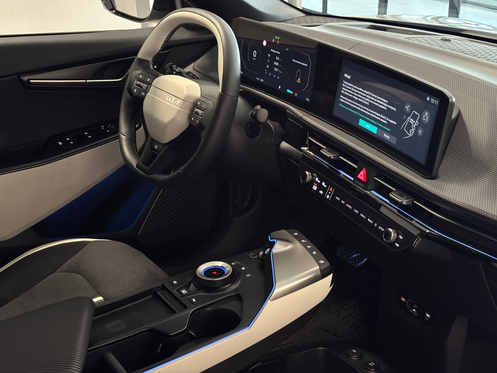 • Trójramienna, wielofunkcyjna kierownica wykończona skórą wegańską o sportowej stylistyce