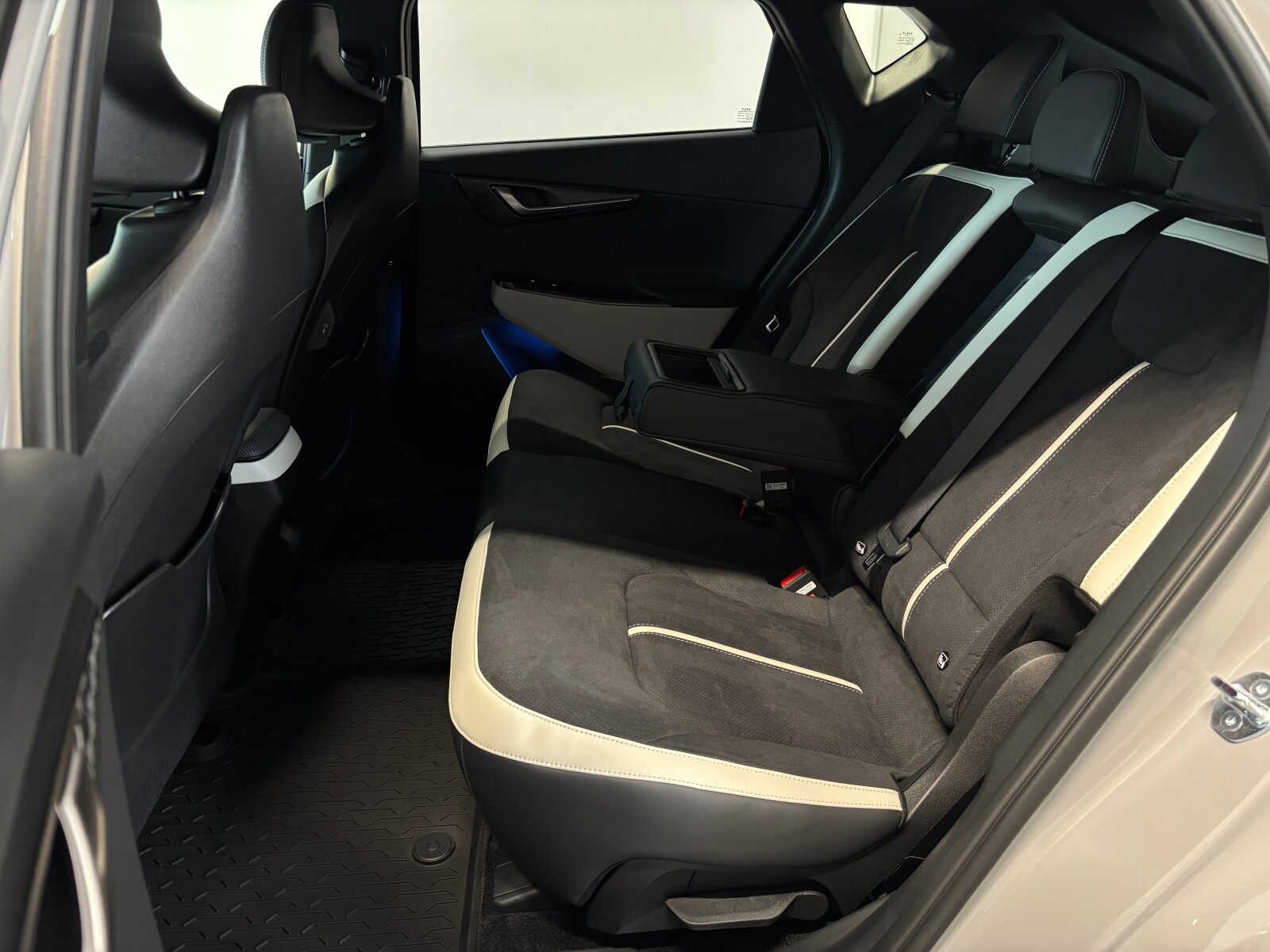 Kolor Wewnętrzny:Tapicerka zamszowa-skórzana (skóra wegańska) w kolorze czarnym z obszyciem boczków fotela skórą wegańską w kolorze jasnoszarym