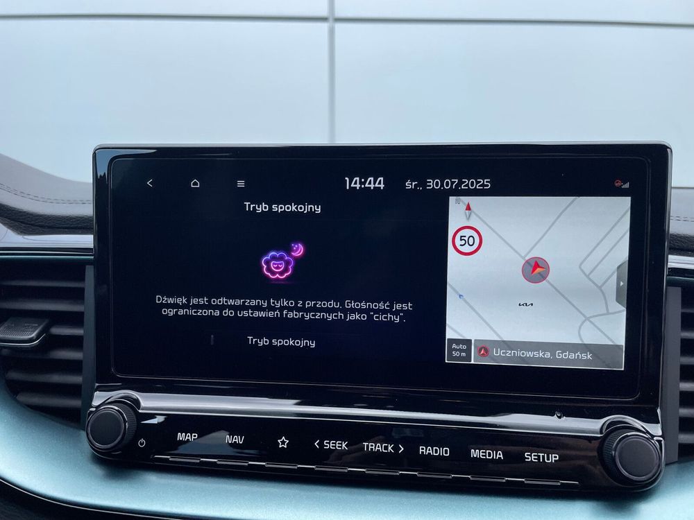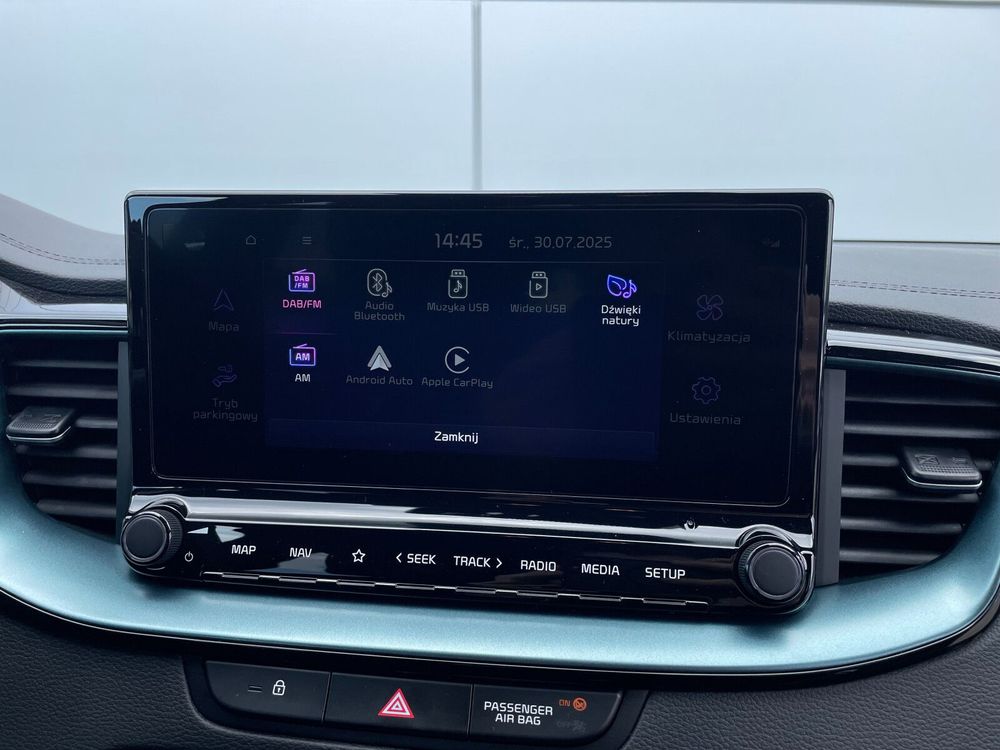 - 10,25-calowy centralny ekran nawigacji satelitarnej, radio DAB, interfejs Apple CarPlay / Android Auto, usługi cyfrowe Kia Connect